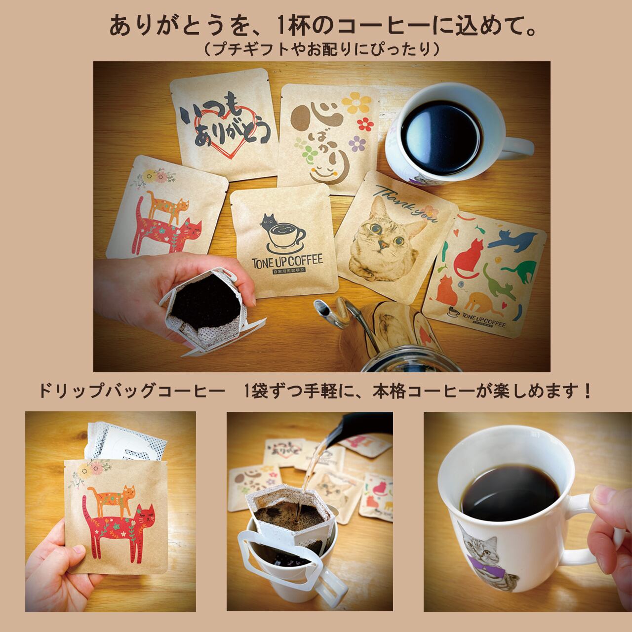【10個】ありがとうの気持ちを伝えるドリップバッグセット(猫)