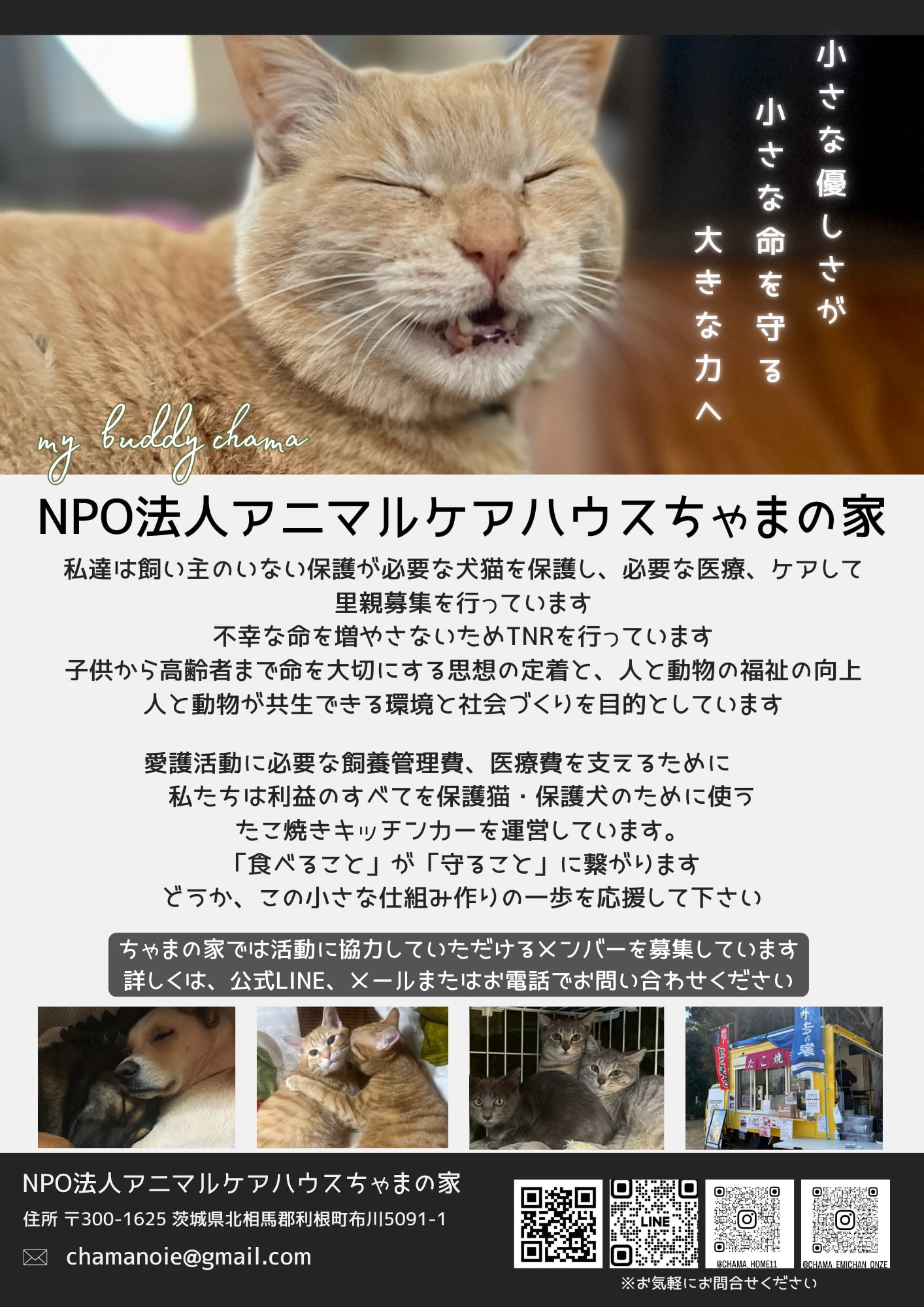茨城県利根町にて、保護猫・保護犬のために活動をしている